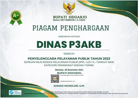 PENGHARGAAN PENILAIAN AKUNTABILITAS KINERJA INSTANSI PEMERINTAH (AKIP) KABUPATEN SIDOARJO TAHUN 2023